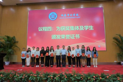 政府审计在线博彩平台 副院长王士红宣读了《政府审计在线博彩平台 关于表彰2019年度研究生“优秀实践集体”及“优秀实践个人”的决定》。审计署驻广州特派办副特派员张冬霁、政府审计在线博彩平台 院长周维培为13位获得“优秀实践个人”称号的同学颁发荣誉证书,研究生院院长姜德波为两个获得“优秀实践集体”称号的集体颁发荣誉证书。