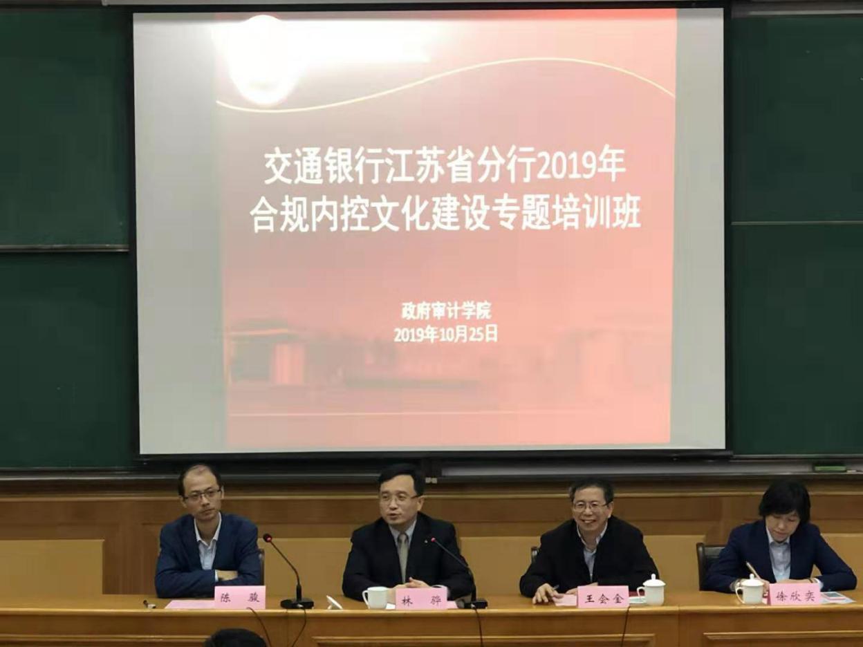 1023-26日,由我院承办的交通银行江苏省分行2019年合规内控文化建设专题培训班顺利举办。交通银行江苏省分行党委书记、行长林骅,南京审计大学党委副书记、副校长王会金教授出席了培训班开班仪式。政府审计在线博彩平台 执行院长陈骏教授主持开班仪式。