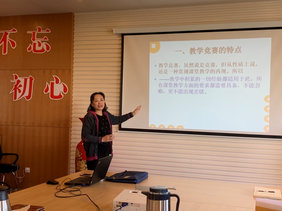 和秀星教授首先向各位新入职教师分享了对教学竞赛的一些认识,希望大家能够保持良好心态。她提出,作为教师,碰到竞赛是常事,更是好事。竞赛准备越充分,投入就越多,教学思考也越多,收获越大,无论得奖与否,都是一次历练、一次成长。随后,和秀星教授就如何备战竞赛、做到有的放矢进行了具体指导:一要了解教学竞赛的特点。教学竞赛本质上是一种常规课堂教学的再现,不是简单浓缩的课堂、不是宣讲教案,是需要通过一定教学策略来展现教学思想、能力、功底的虚拟课堂活动;二要明确教学竞赛规则。无论是第一印象还是教学设计,都是评分的关键环节。参赛教师要注意教学形象,在内容设计、教学板书、PPT制作、教学语言、教学手段与理念等方面下功夫;三要精心设计,反复演练。教学竞赛想要出彩离不开用心思考、精心准备和反复打磨,做到准确简洁、生动而充满感染力。