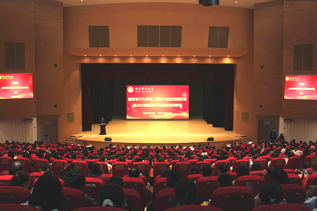 10月17日下午,由政府审计在线博彩平台 主办、校友工作办公室协办的南京审计大学第二届审计校友发展论坛暨2020级新生专业教育思政教育在审计干部教育在线博彩平台 学术报告厅隆重举行。张卫东、薛剑春、马宏飞、谢健、王立、陈琳、黄天友、夏俊、王涛、邵中、丁义等校友受邀参加。南京审计大学党委副书记、副校长王会金,校友工作办公室主任许文蓓、副主任张林林,政府审计在线博彩平台 党总支书记祝遵宏,国家审计研究院执行院长王素梅,政府审计在线博彩平台 副书记、副院长戚振东,政府审计在线博彩平台 副院长李兆东,政府审计在线博彩平台 新生班导师、2020级本科及研究生全体新生和部分老生代表出席会议。会议由在线博彩平台 党总支书记祝遵宏主持。