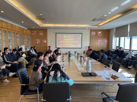 11月11日下午,政府审计在线博彩平台 在敏行4楼会议室举行了“强化底线思维、防范化解风险”——《习近平谈治国理政》第三卷专题党课学习。政府审计在线博彩平台 党总支全体教工党员、研究生党支部书记和部分学生党员参加,校党委常委、组织部部长李乾文和校纪委委员、澄园书院党委书记谢刚听会指导。党课由政府审计在线博彩平台 党总支书记祝遵宏主讲。