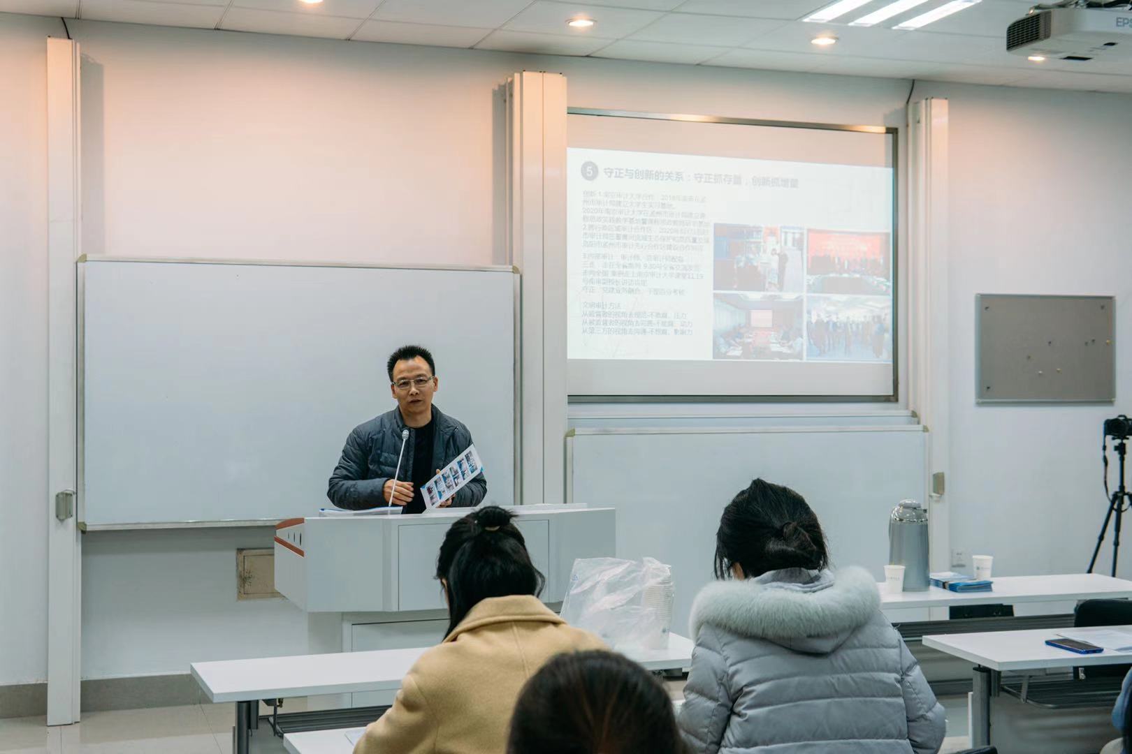 12月18日,政府审计在线博彩平台 在敏行楼202举行了“实务专家进讲堂之课程思政系列活动——平凡岗位,不凡追求”。本次活动邀请了现任孟州市审计局党组书记、局长孙志刚。孙志刚1990年参加工作,从事法律工作16年,在乡镇、办事处工作11年,拥有丰富的基层工作经验。