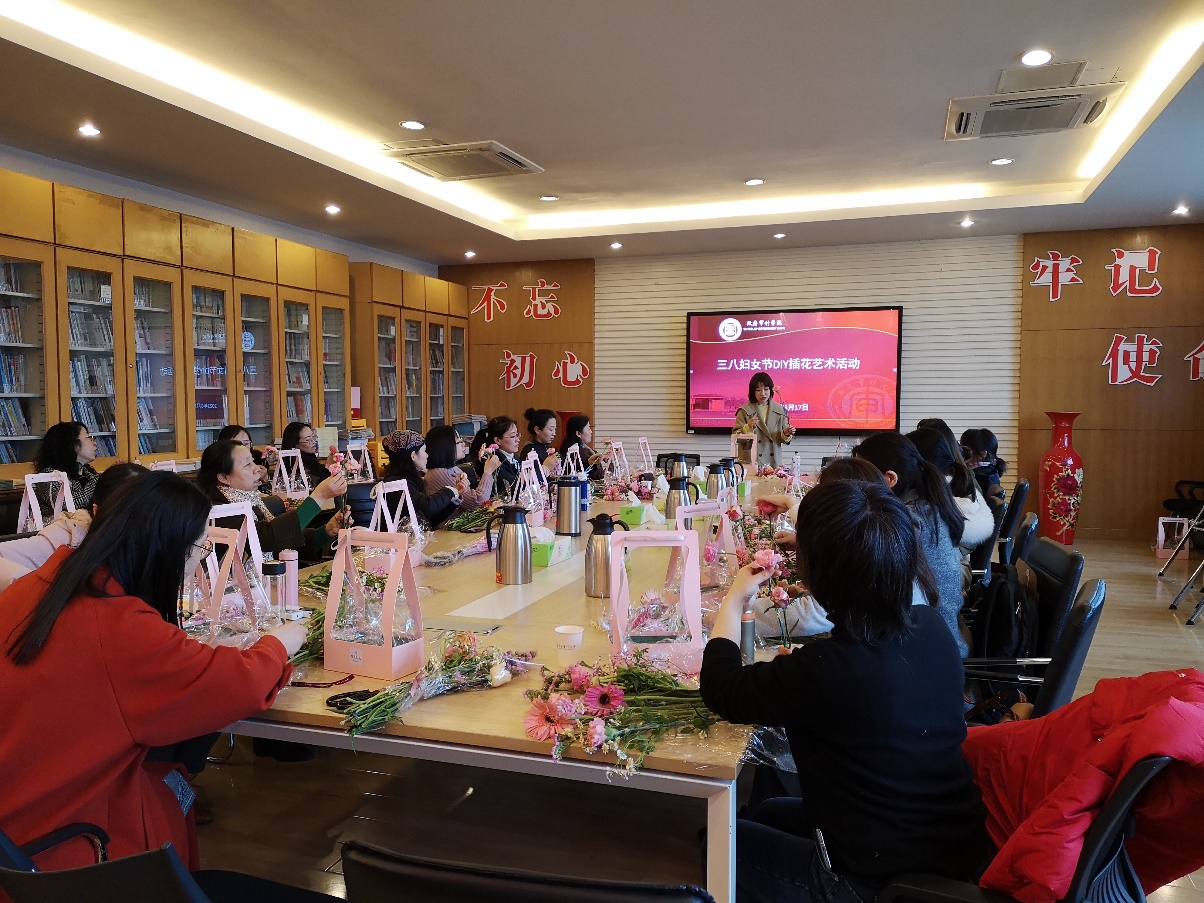 烟花三月,春意正浓。为丰富女同胞业余生活,提升工作幸福指数,3月17日下午,政府审计在线博彩平台 组织全体女教职工开展三八妇女节DIY插花艺术活动。活动邀请了花艺老师现场授课,在线博彩平台 四十余名女教职工参与其中,共同体验插花艺术。
