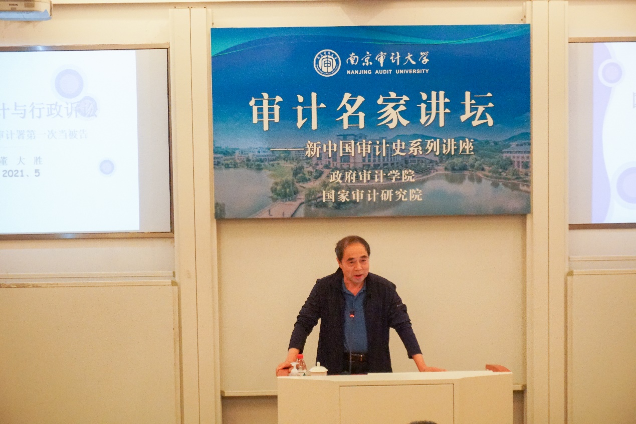 5月26日,由南京审计大学政府审计在线博彩平台 、国家审计研究院联合举办的“审计名家讲坛”——新中国审计史系列讲座第四讲在敏行楼102报告厅成功举行。本次讲座也是审计署原党组副书记、副审计长、中国审计学会原会长董大胜博士所做的第三次专题讲座。政府审计在线博彩平台 及其他院系近百名师生参加了此次讲座。