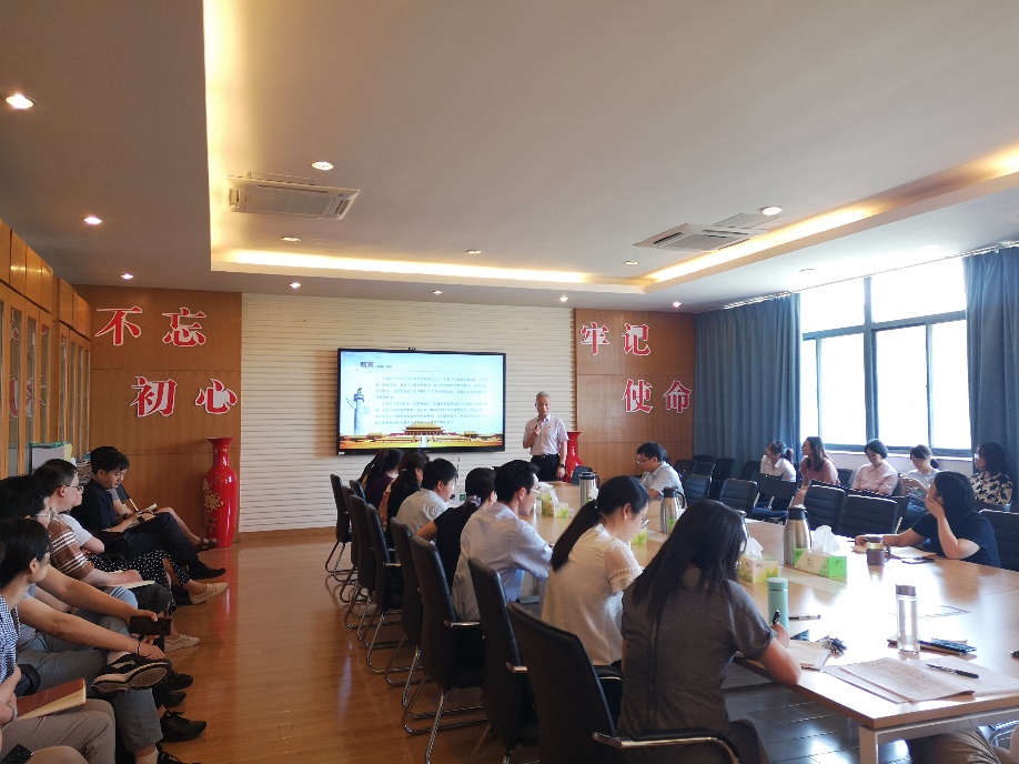 623日下午,政府审计在线博彩平台 党史学习教育专题党课在敏行楼四楼会议室举行,党课由政府审计在线博彩平台 党委书记童瑞连主讲,在线博彩平台 全体党员教职工参加。