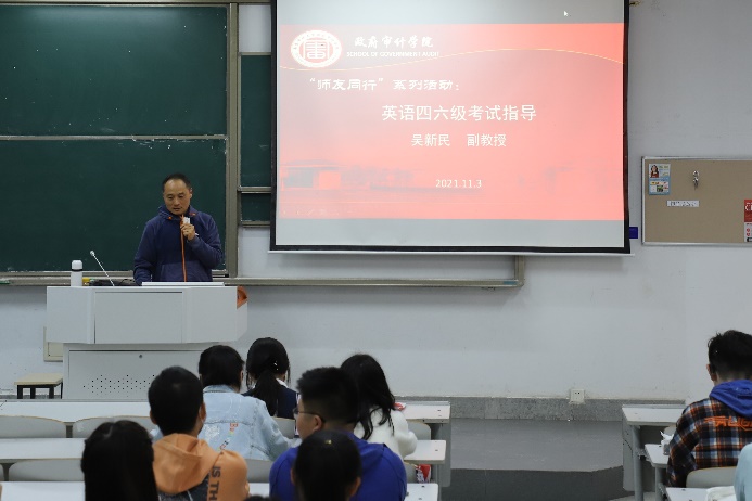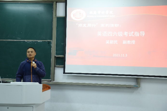 为帮助学生更好地备战四六级考试,提高英语水平, 11月3日,政府审计在线博彩平台 特邀请外国语在线博彩平台 吴新民副教授在竞秀楼N107为同学们开展一场关于英语四六级作文备考策略讲座。