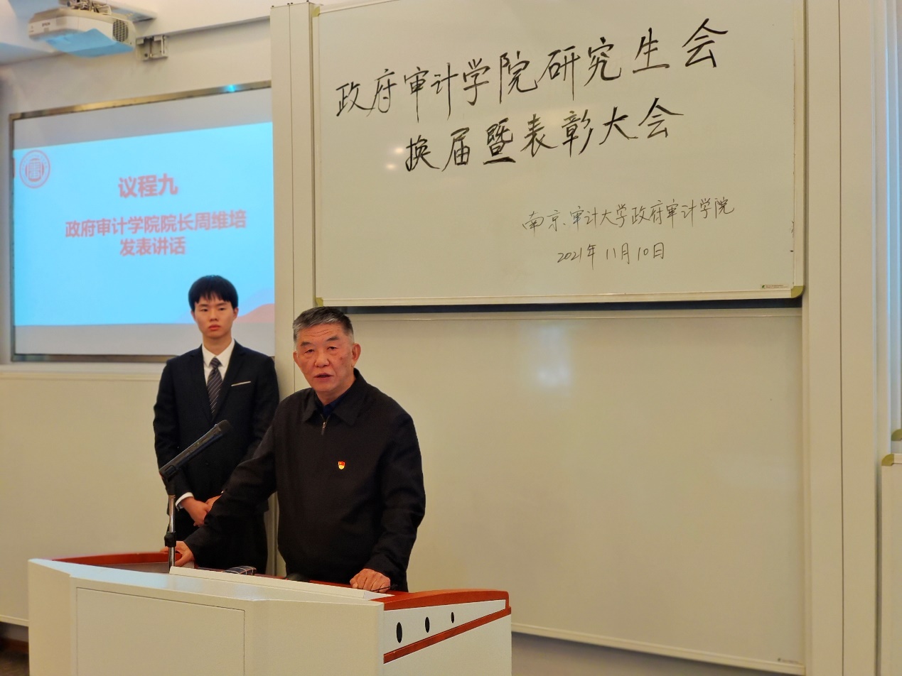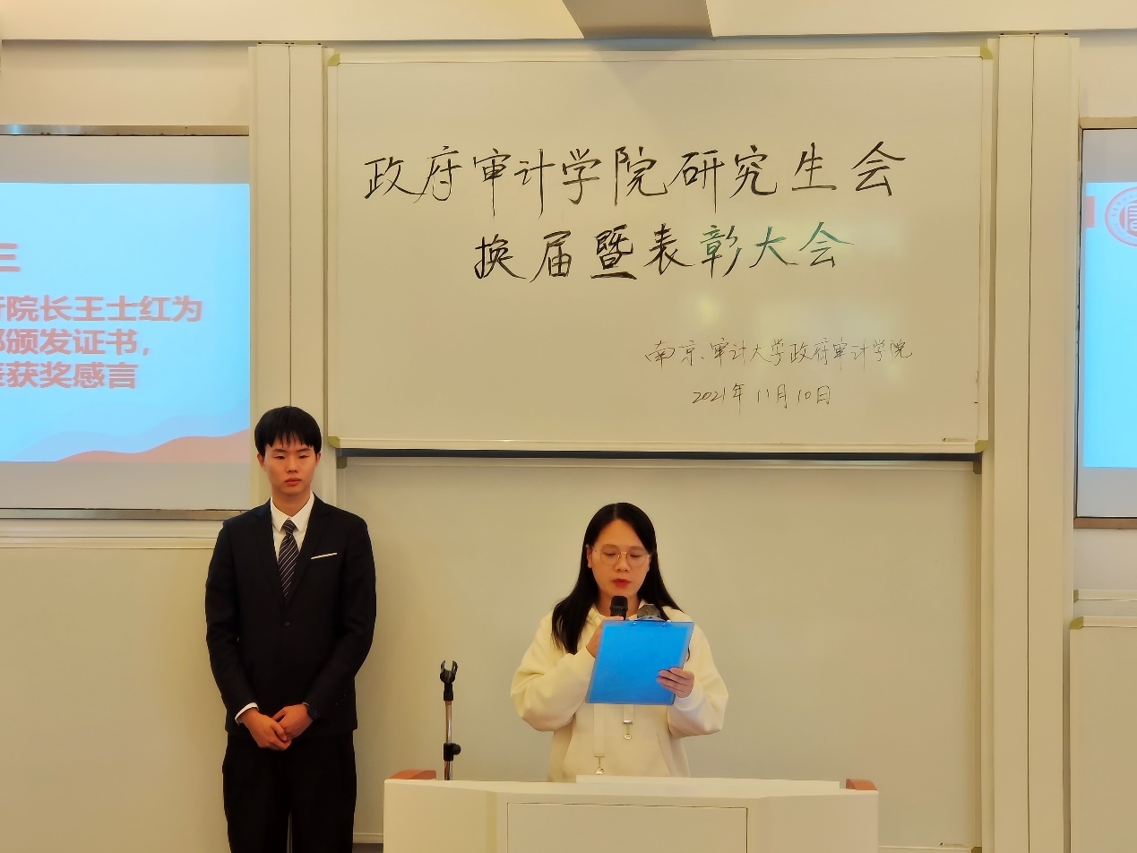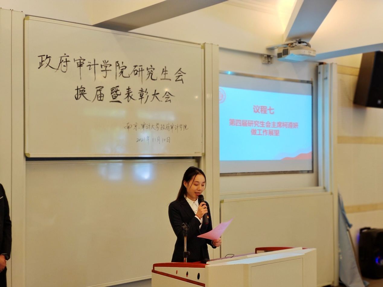 2021年11月10日,南京审计大学政府审计在线博彩平台 研究生会换届暨表彰大会在敏行楼101顺利召开。