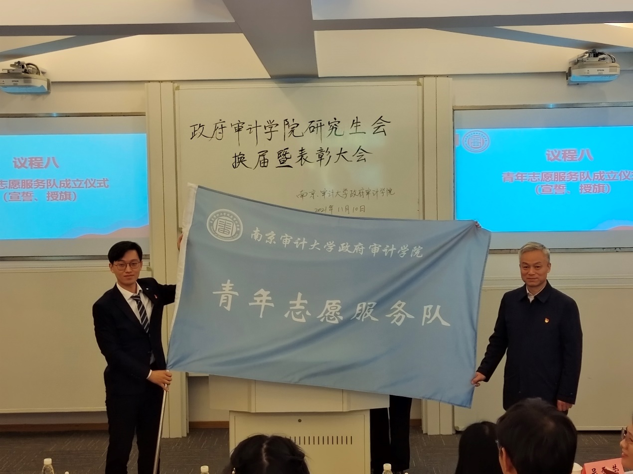 政府审计在线博彩平台 青年志愿服务队成立。在成立仪式上,队长王思尧代表志愿服务队宣誓,童瑞连书记向志愿服务队授旗。