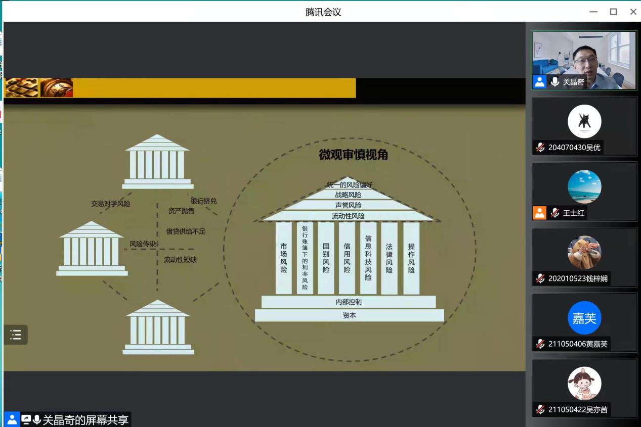 关晶奇先生在讲座中与同学们分享了风险的本质、内部控制与风险和金融业中的风险管理、内部控制和审计三个主要话题。