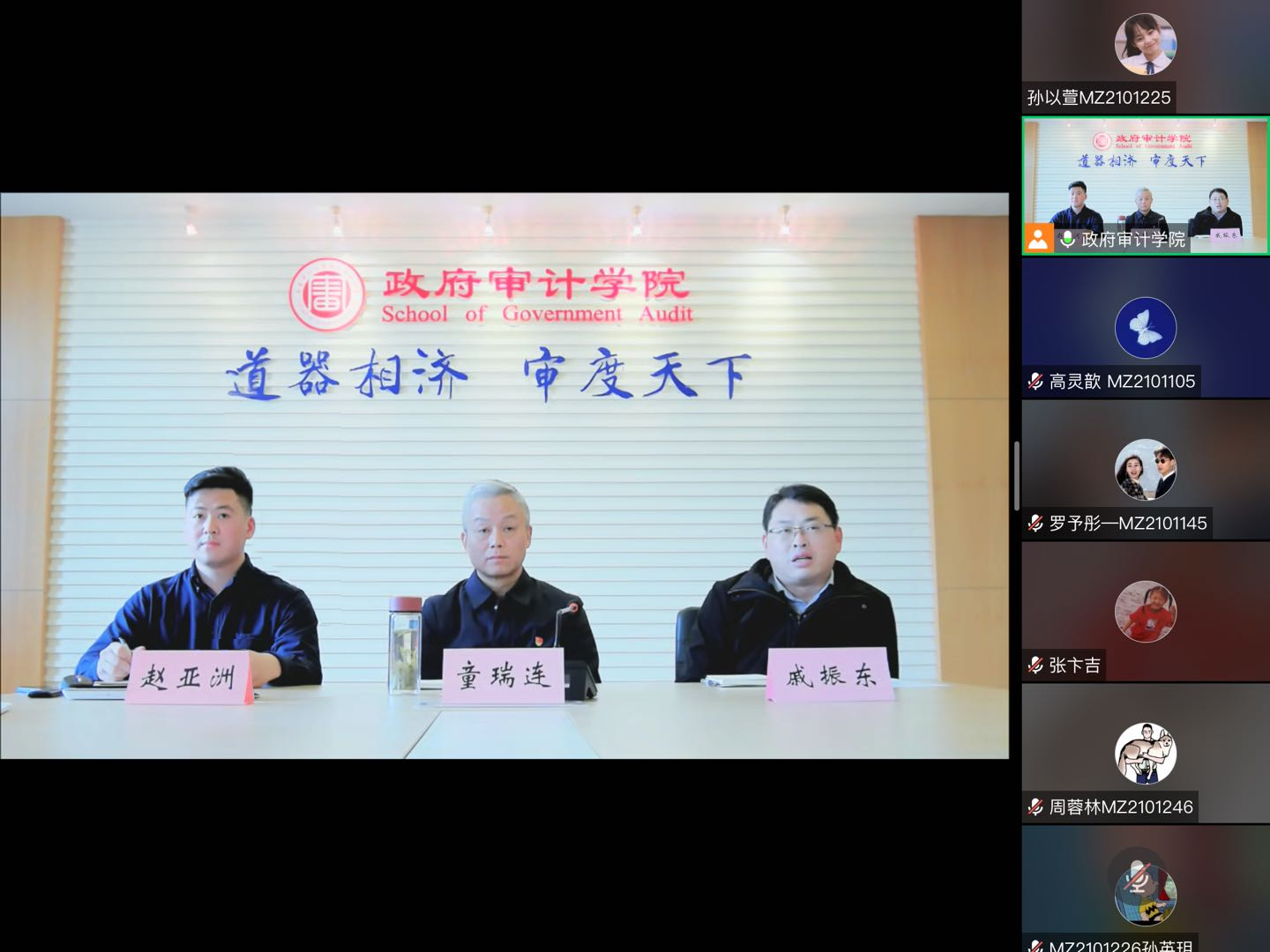 为深入了解疫情防控期间在校外实习同学们的现实情况,4月1日下午,政府审计在线博彩平台 召开了上海浦东新区审计局实习小组线上师生座谈会。政府审计在线博彩平台 党委书记童瑞连,副书记、副院长戚振东以及在浦东新区审计局实习的全体同学参加座谈会。会议由研究生辅导员赵亚洲主持。