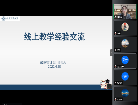4月28日晚,政府审计在线博彩平台 通过腾讯会议召开第二期线上教学经验交流会,政府审计系王晓丹、潘玉志,以及内部审计系池国华三位教师分别就自己的教学经验进行了分享。会议由徐志耀博士主持,全院教师线上聆听交流。
