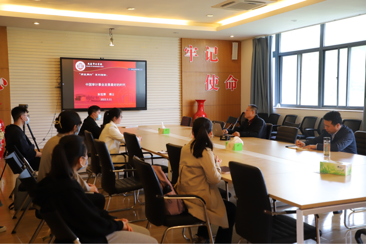 5月11日下午,政府审计在线博彩平台 通过线上线下相结合的方式开展了第四十五期“师友同行”主题讲座——“中国审计事业发展最好的时代”。本次讲座由中国审计学会会长孙宝厚博士主讲,21级审计7班田的同学主持,副院长李兆东以及在线博彩平台 150多名师生代表聆听讲座。