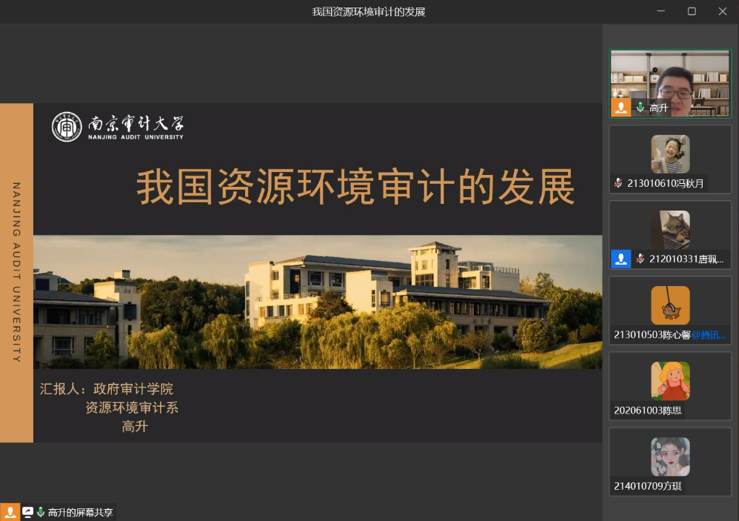 5月21日下午,政府审计在线博彩平台 在线上开展了“师友同行”系列第四十八期主题讲座——我国资源环境审计的发展。本次讲座邀请政府审计在线博彩平台 资源环境审计系高升博士作为主讲人。高老师主要从事自然资源与环境审计研究,曾在审计署驻南京特派员办事处挂职锻炼,参与多项国家资源环境审计项目,具有相关审计实务经验。