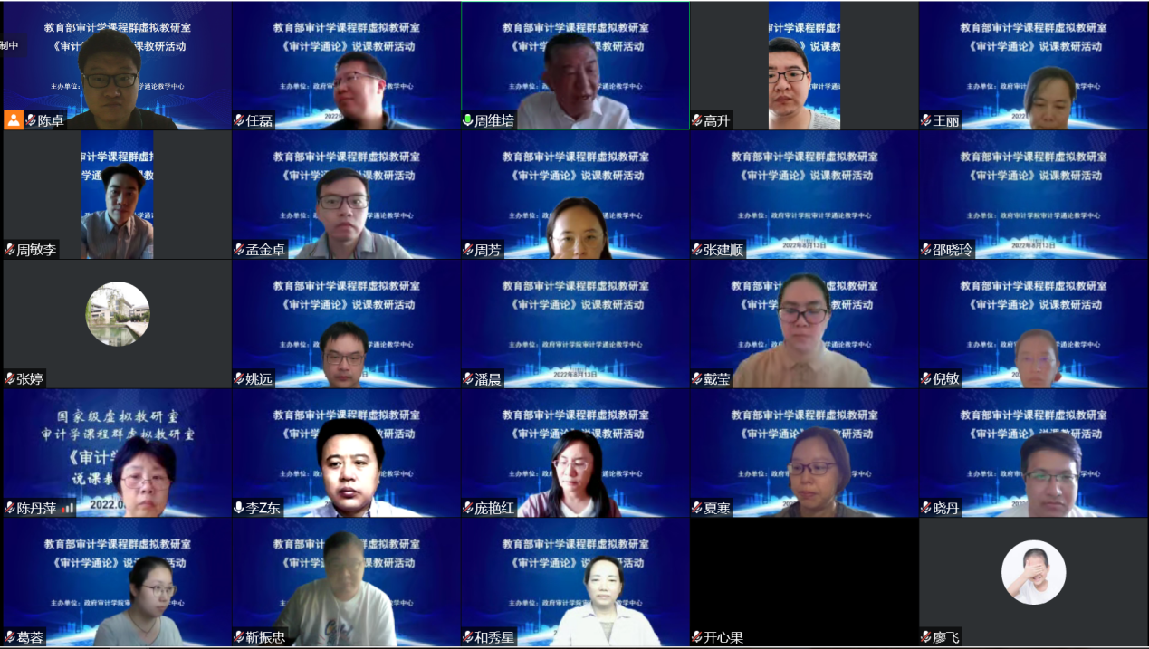 教育部审计学课程群虚拟教研室与政府审计在线博彩平台 审计学通论教学中心于8月13日举办《审计学通论》说课教研活动。本次活动邀请了参编《审计学通论》教材的12位主笔老师担任说课嘉宾,进行线上集体备课。政府审计在线博彩平台 院长周维培、执行院长王士红、副院长李兆东及50余位教师参与了本次教研活动,活动由审计学通论教学中心副主任陈卓主持。