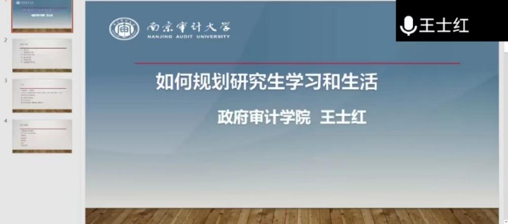为增强2022级审计硕士新生对研究生学业生活的了解,8月19日下午,政府审计在线博彩平台 执行院长王士红教授受邀开展“2022级审计硕士暑期系列学术讲座”之“如何规划研究生学习和生活”主题讲座。讲座由政府审计在线博彩平台 副院长刘静主持,2022级全体研究生线上聆听。