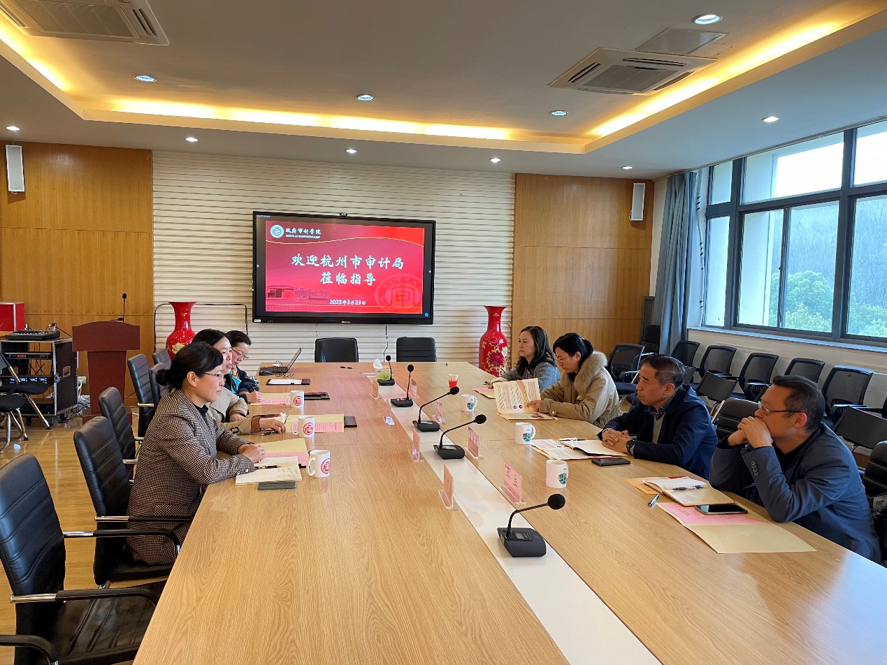 3月23日上午,杭州市审计局党组成员、二级巡视员管新建,法规和审理处处长王立,组织人事处副处长楼婧婧一行莅临我校座谈交流。政府审计在线博彩平台 党委书记李海燕,执行院长王士红,曾在杭州市审计局挂职的贾云洁教授、正在浙江省审计厅挂职的教师陈秋月参加座谈。座谈会由李海燕主持。