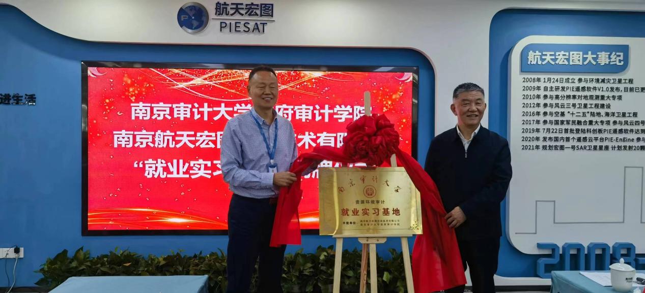 翟建设、周维培代表双方为南京审计大学资源环境审计就业实习基地揭牌。