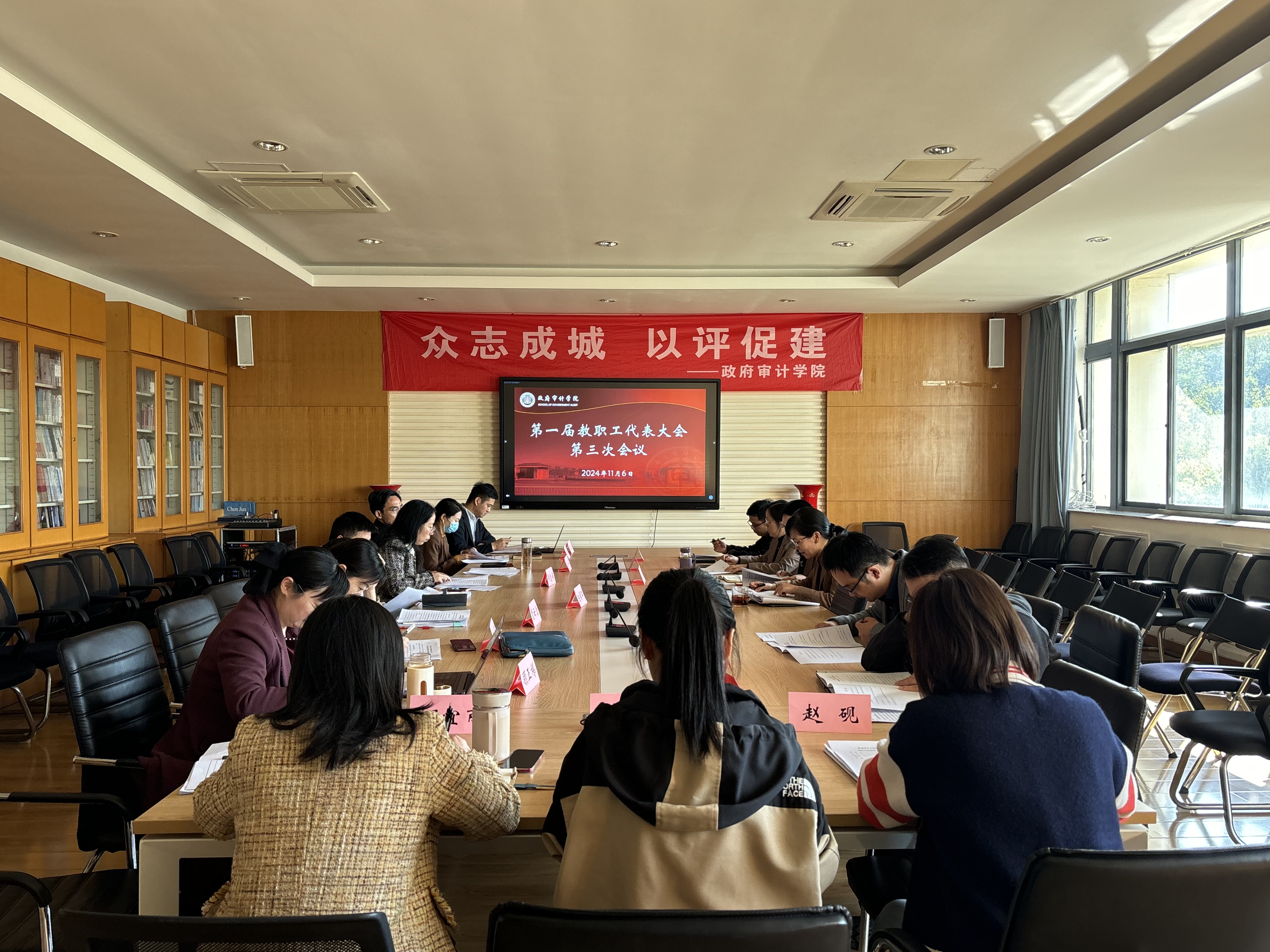11月6日下午,政府审计在线博彩平台 在敏行四楼会议室召开第一届教职工代表大会第三次会议。在线博彩平台 党政班子、教职工代表参加会议。会议由在线博彩平台 党委书记李海燕主持。
